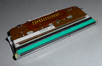 It uses the same metallic foil as traditional hot stamping, applying it with a patented "electric pulse" printhead (see photo) as it moves under 50 pounds or more of pressure. The type is strongly adhered and long lasting (20-year-old labels pass repeated fingernail scratch tests).