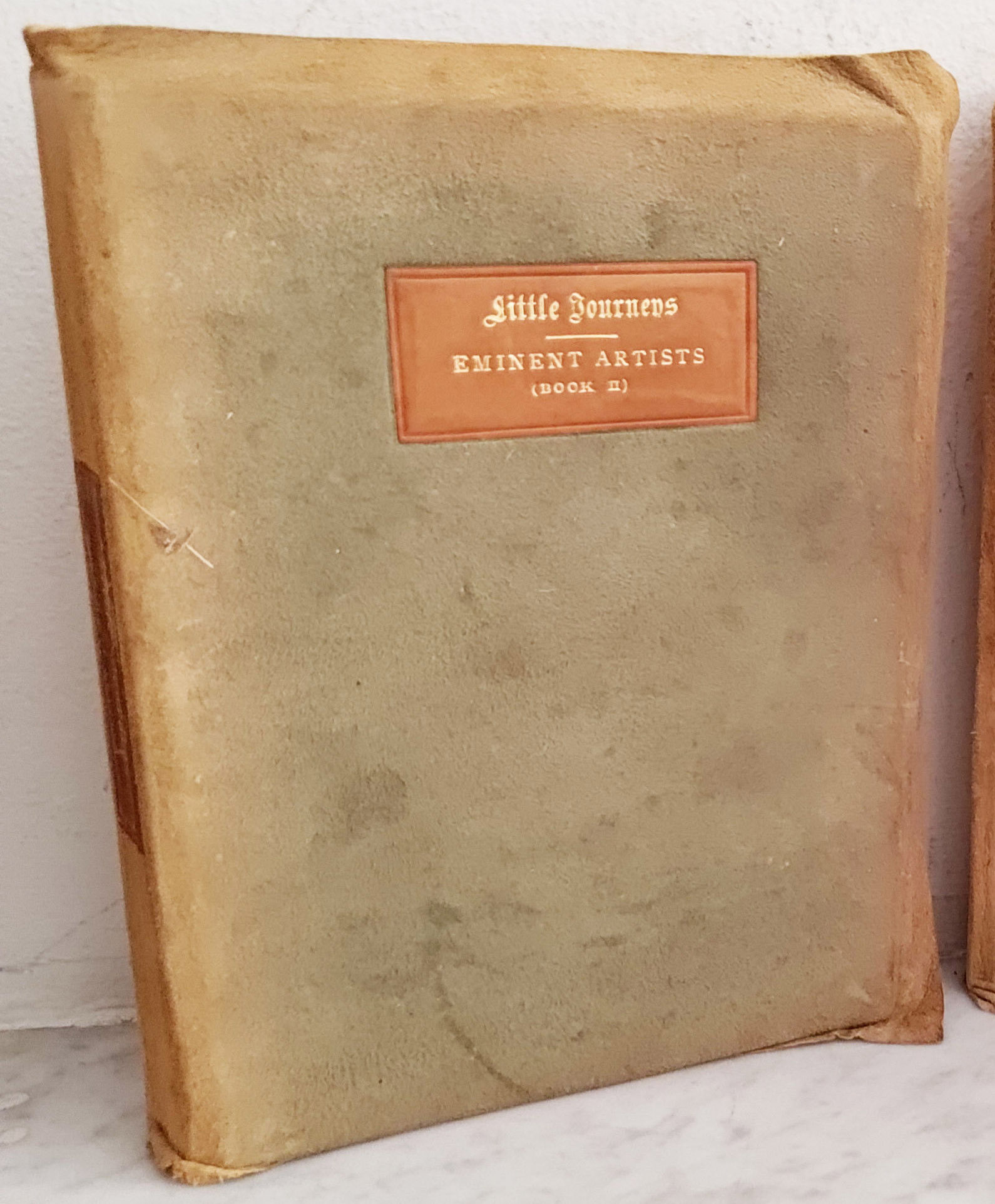 2 volumes bound in suede by the Roycrofters artist colony. Hand-made paper with decorations handpainted and signed by the artists .$95