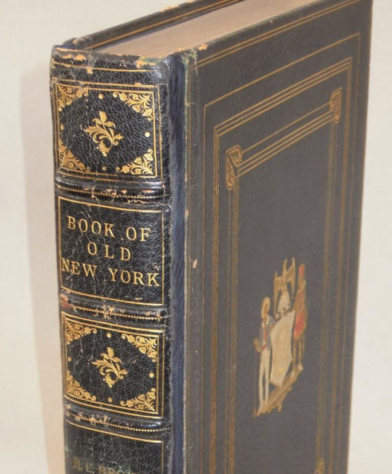 Finely crafted full leather binding in clamshell box with decorative leather label. An extraordinary compendium of NYC history with contents and images unavailable elsewhere. $350